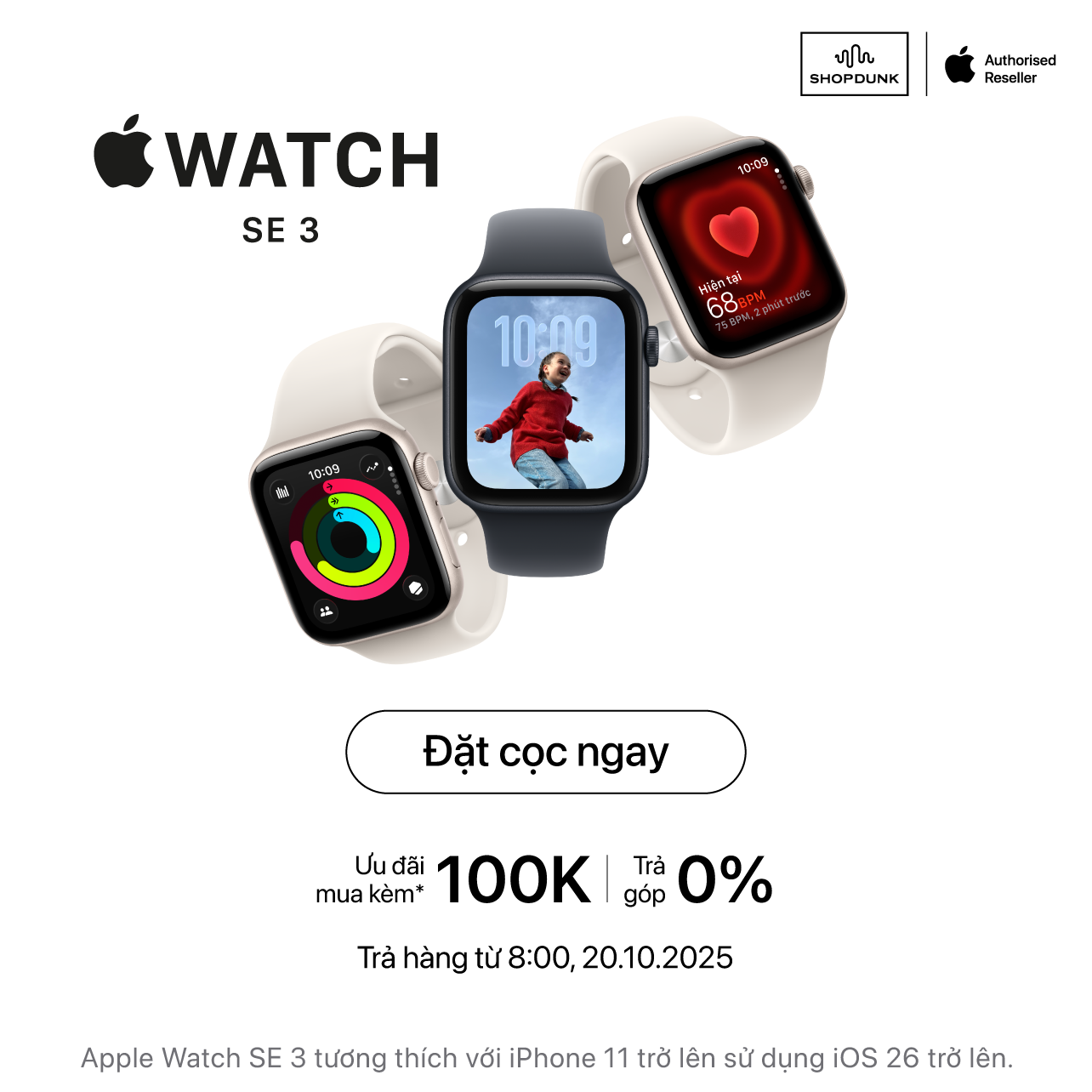 Sẵn sàng cho hành trình mới cùng Apple Watch SE 3 – người bạn đồng hành hiểu bạn nhất. Đặt cọc ngay hôm nay tại ShopDunk để nhận ưu đãi và quà tặng hấp dẫn!