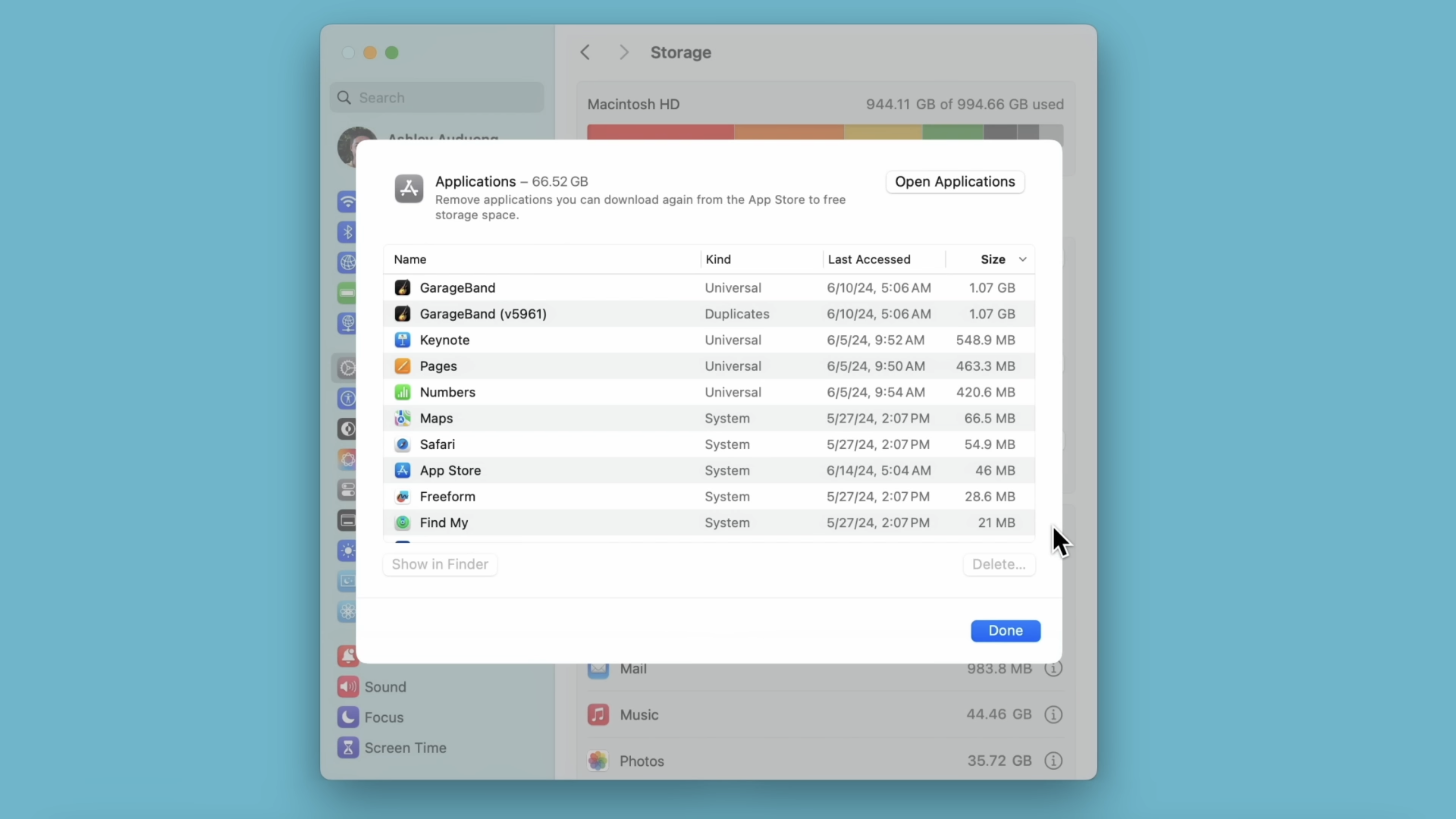Ví dụ: Nhiều người giữ đến 2 - 3 bản cài đặt GarageBand, Final Cut Pro hoặc các bộ file dự án không còn sử dụng.