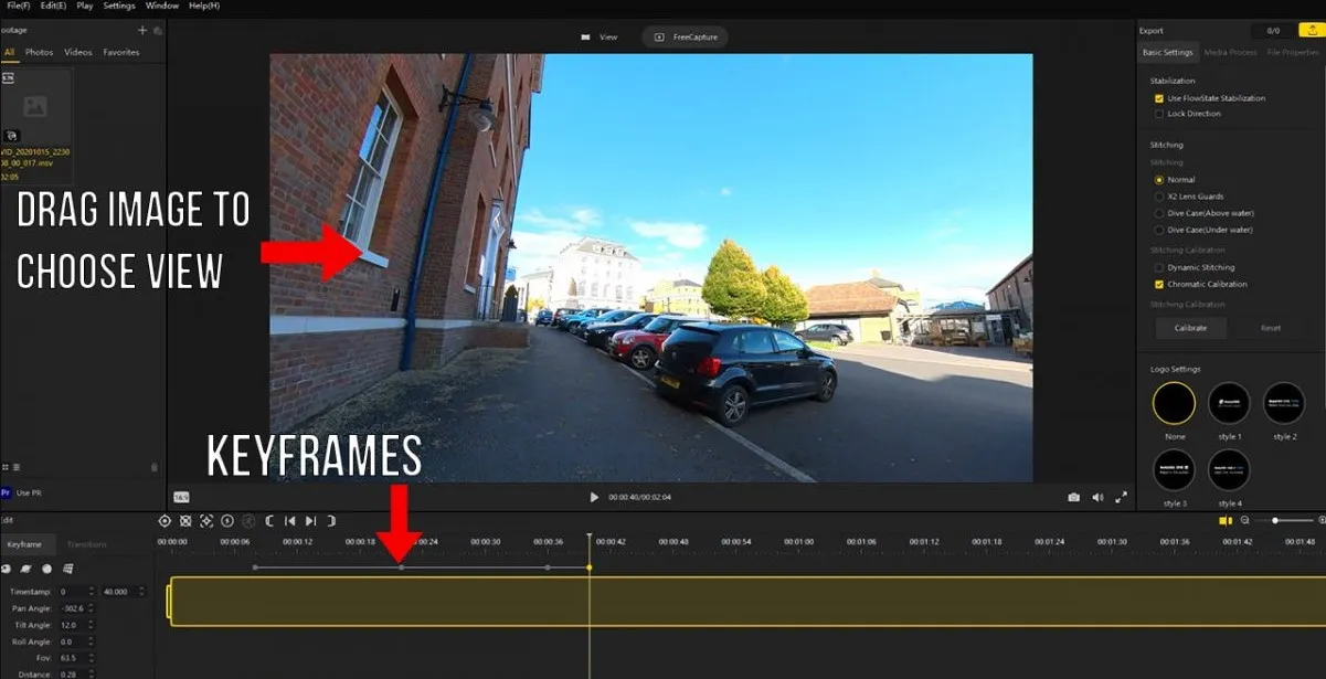 Đừng chỉ xuất video với một góc nhìn cố định. Hãy sử dụng Keyframe trong Insta360 Studio để tạo ra chuyển động camera ảo.