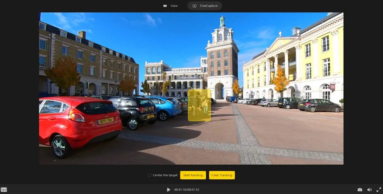 Bạn có thể tận dụng công nghệ AI của Insta360 Studio qua tính năng Deep Track để khóa và theo dõi bất kỳ đối tượng nào (người, vật, xe cộ) trong video 360. Cách sử dụng rất đơn giản: chỉ cần dùng công cụ chọn (selection tool) để khoanh vùng đối tượng bạn muốn theo dõi, và AI sẽ tự động tạo Keyframe để giữ đối tượng đó luôn ở trung tâm khung hình.