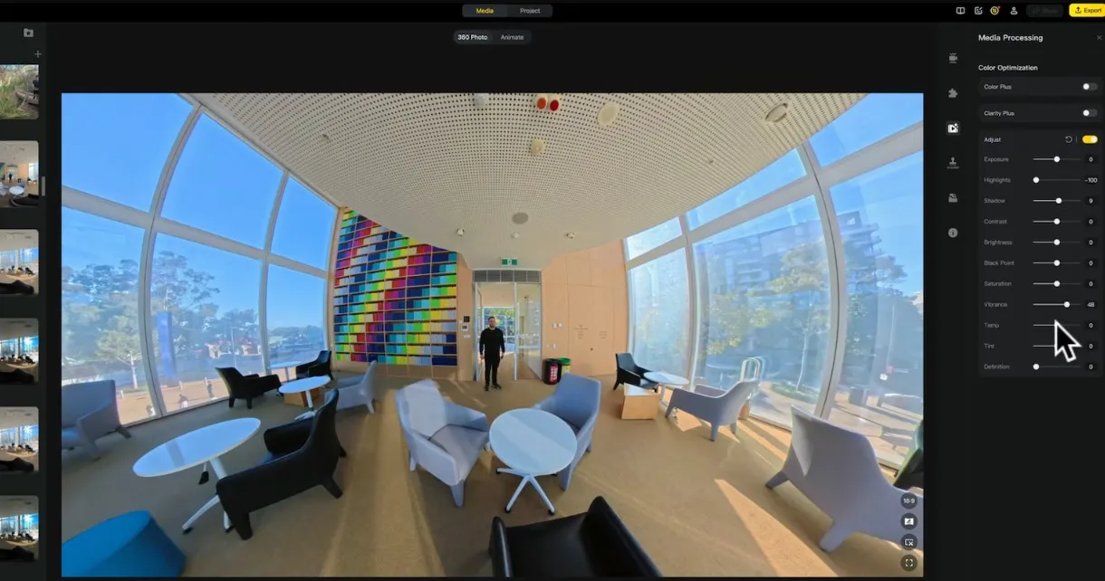 Insta360 Studio được trang bị nhiều công cụ hậu kỳ mạnh mẽ, giúp bạn tạo ra những thước phim chuyên nghiệp và giàu tính điện ảnh mà không cần chuyển sang phần mềm bên ngoài.