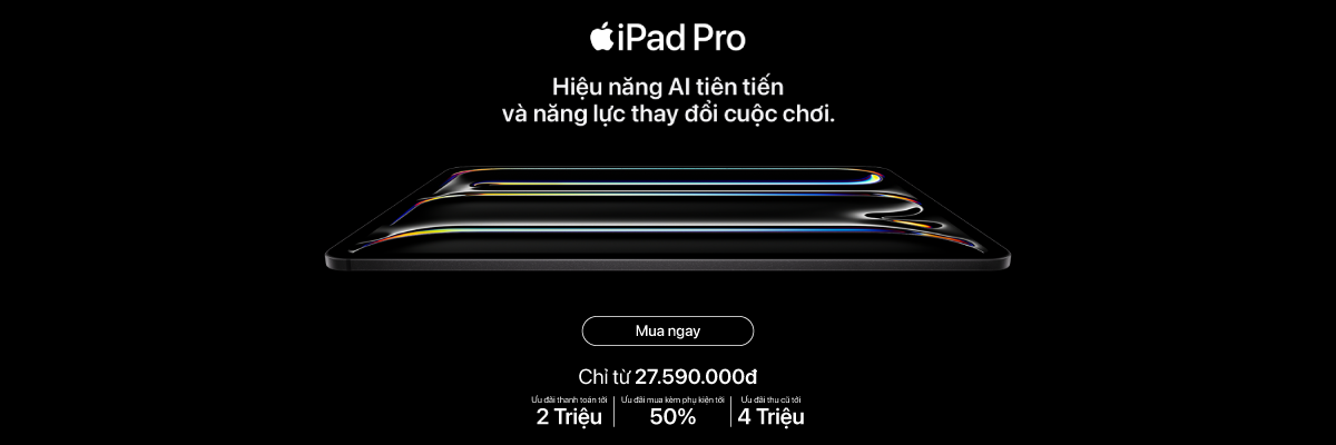 • iPad Pro M5: dòng iPad mới nhất 2025 với hiệu năng tối thượng. iPad Pro M5 không chỉ là một chiếc máy tính bảng - đó là bước nhảy vọt về sức mạnh công nghệ thiết bị số di động. Máy được trang bị chip Apple M5 đột phá, dẫn đầu công nghệ AI, cùng màn hình Ultra Retina XDR được trang bị công nghệ OLED hai lớp đột phá, mang lại độ tương phản chuẩn xác, độ sáng tuyệt vời và hiệu năng dải tần nhạy sáng cao cùng ProMotion và True Tone đem lại trải nghiệm thị giác chuẩn xác chưa từng có. Từ công việc đến giải trí, iPad Pro M5 đều có thể đột phá, kiến tạo tương lai, xứng đáng là chiếc iPad chỉn chu nhất của năm cho người dùng chuyên nghiệp.