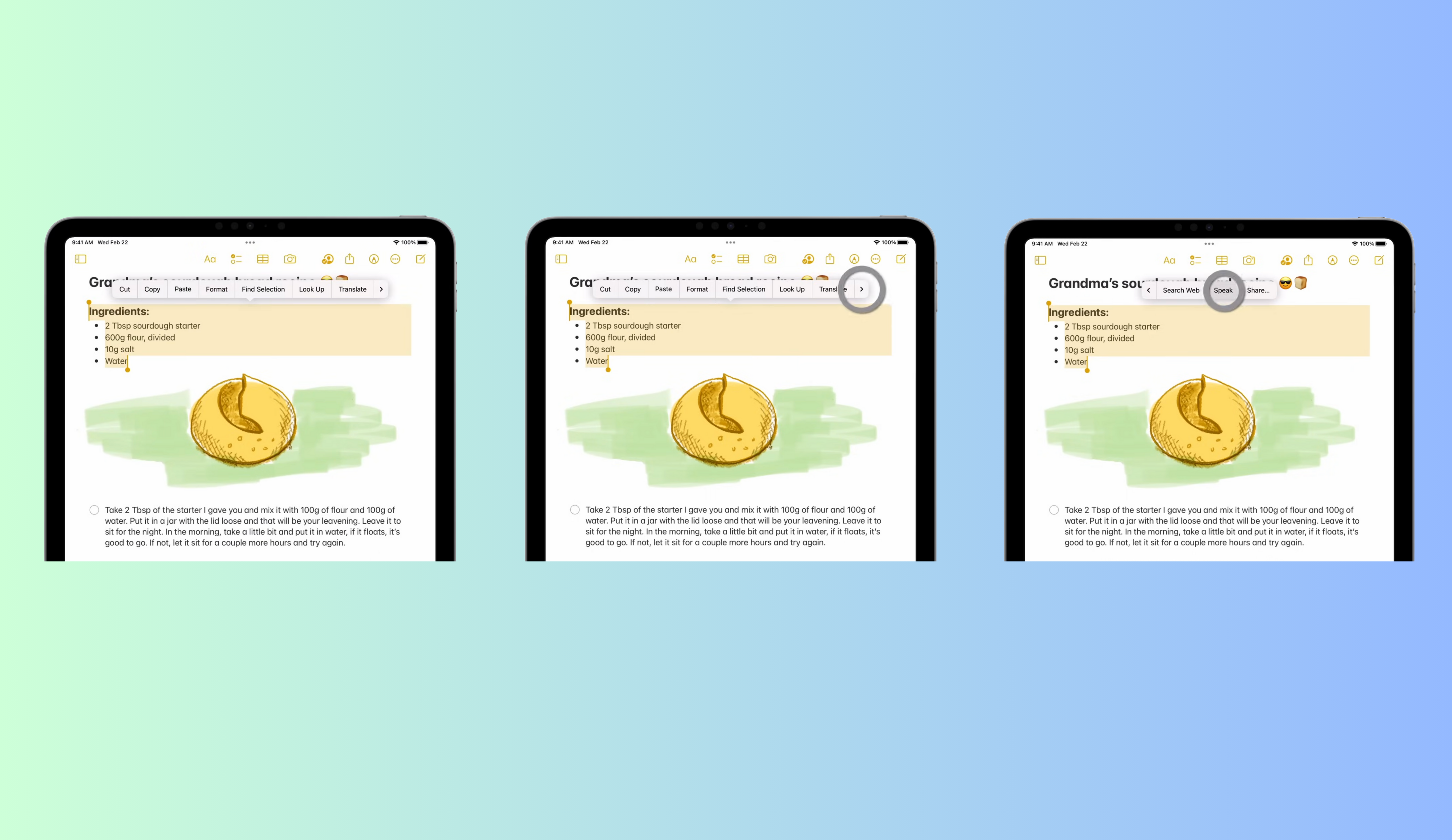 Đây là tính năng lý tưởng cho những ai thường xuyên xử lý văn bản dài, bài nghiên cứu, email công việc hoặc ghi chú bài giảng. Với Đọc phần được chọn, bạn chỉ cần bôi chọn đoạn chữ mong muốn và iPad sẽ lập tức đọc to phần nội dung đó.