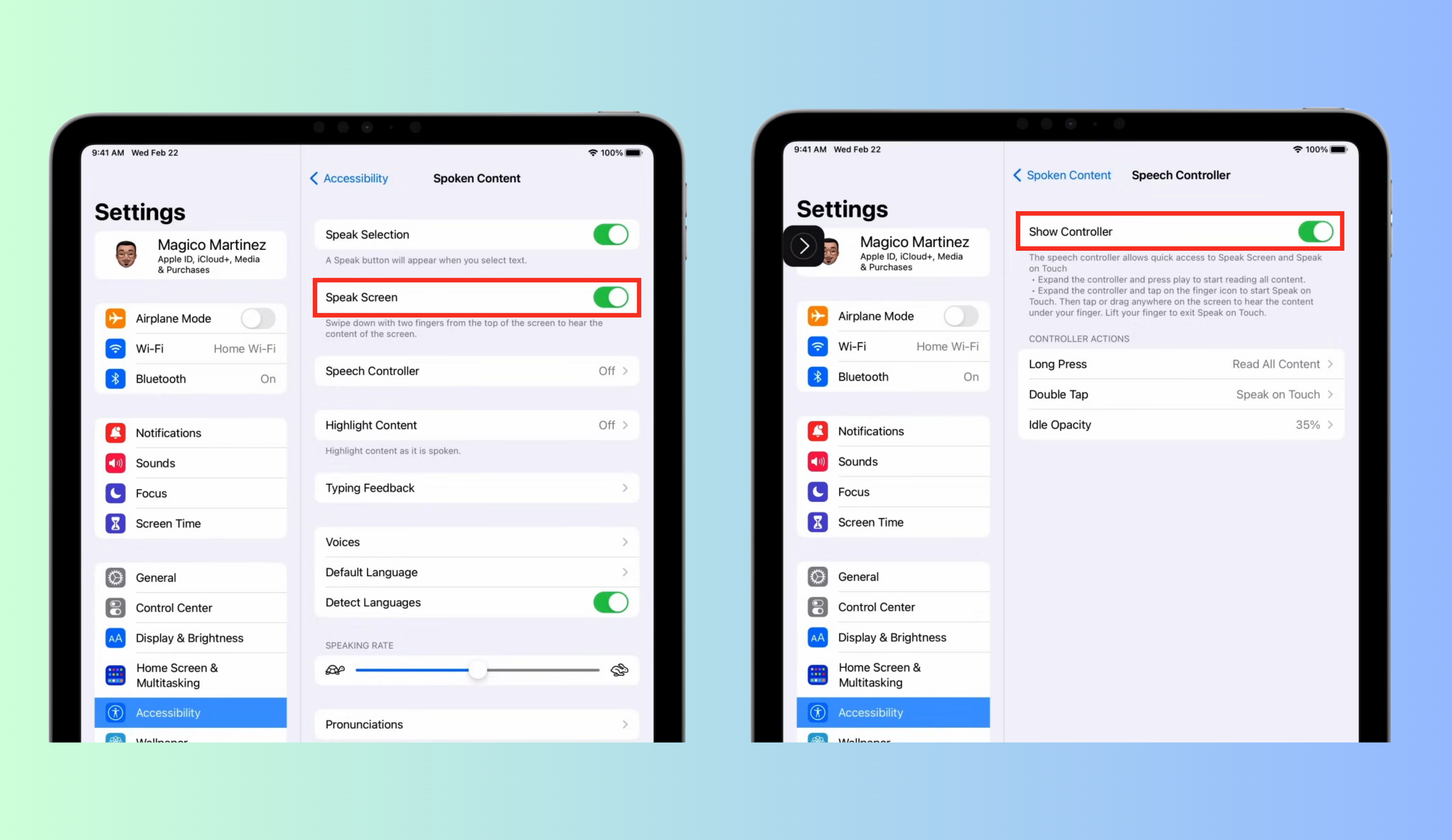 Trong khi Speak Selection phù hợp cho việc đọc từng đoạn nhỏ, Bộ Điều Khiển Giọng Nói là giải pháp toàn diện để iPad đọc toàn bộ màn hình. Đây là công cụ mạnh nhất trong Spoken Content, cho phép điều khiển giống như một trình phát âm thanh: phát, tạm dừng, tua, chỉnh tốc độ và chọn điểm bắt đầu đọc.