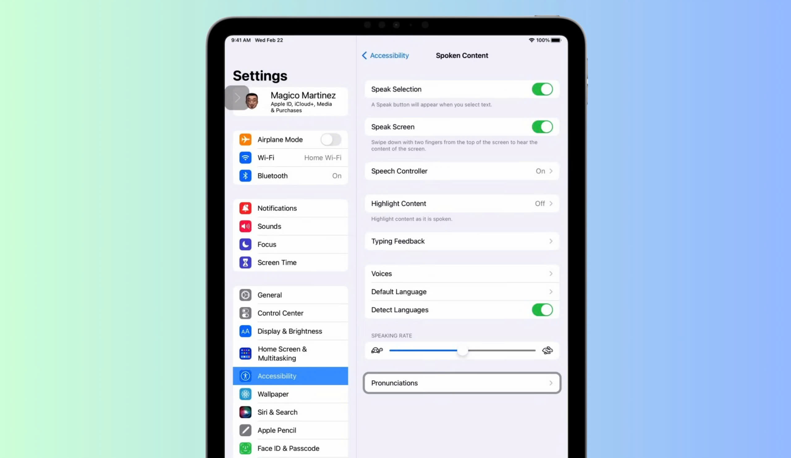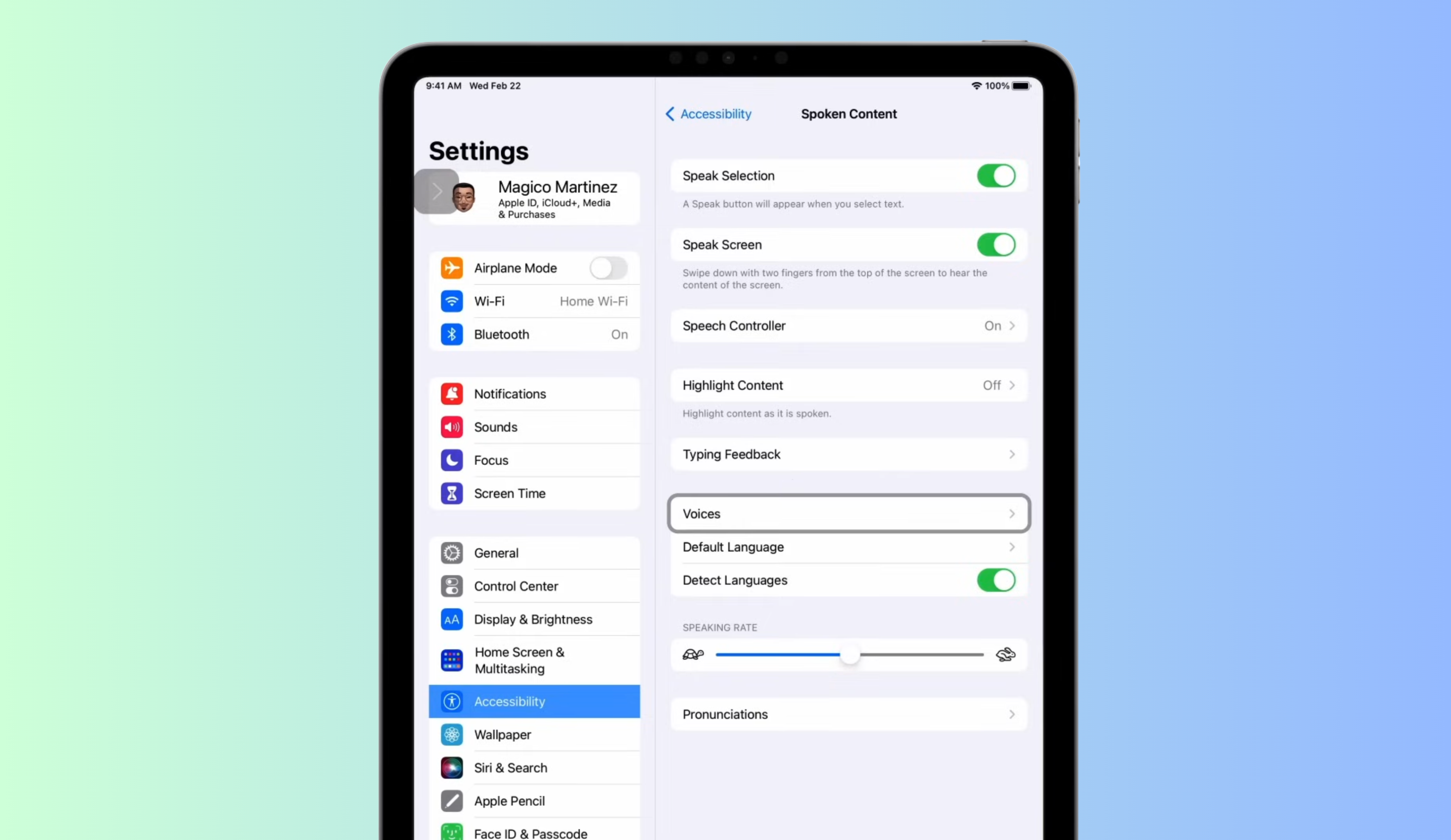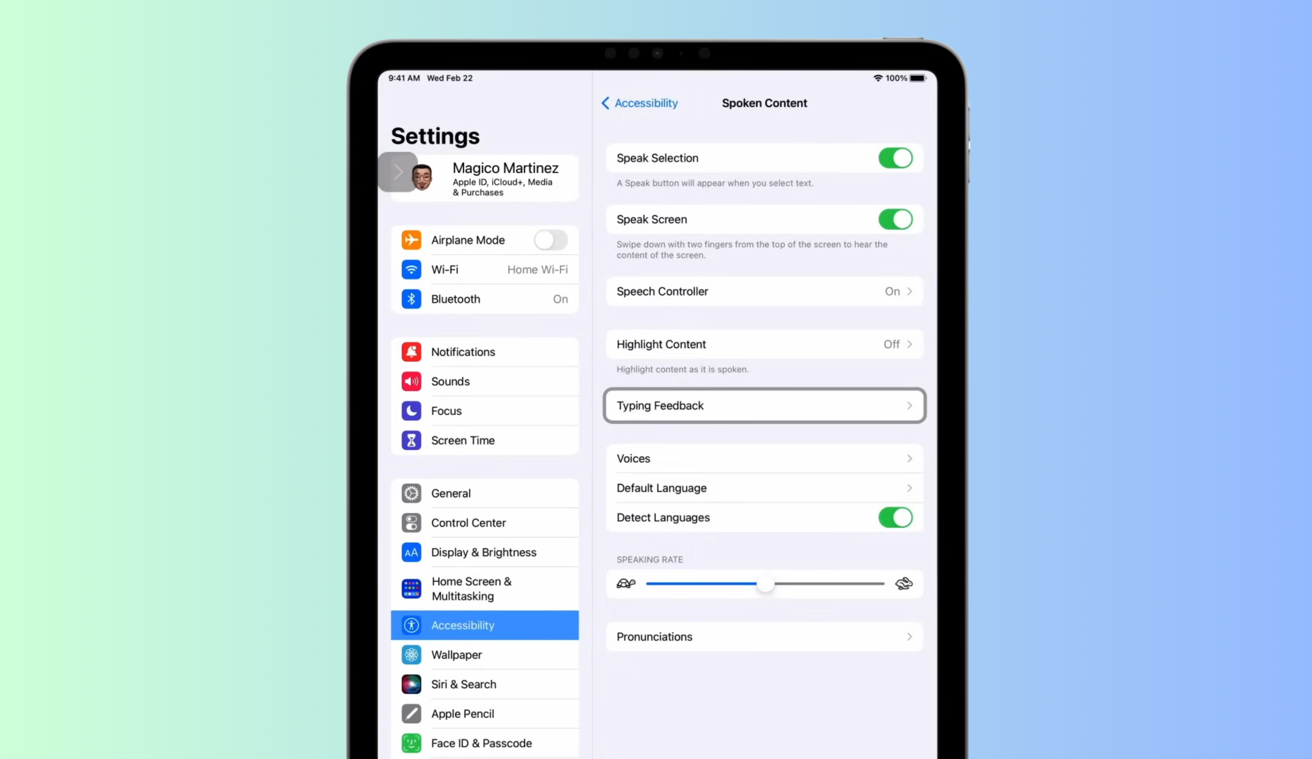 Phần cài đặt tùy chỉnh là “vũ khí bí mật” giúp Spoken Content trở nên linh hoạt và phù hợp với từng nhu cầu. Bạn có thể thay đổi giọng đọc, tốc độ, cách iPad phản hồi khi gõ, và nhiều hơn nữa.