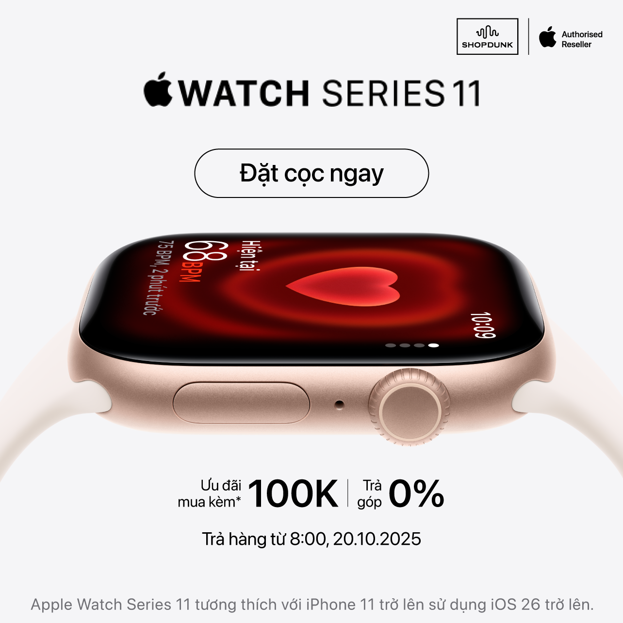 Sẵn sàng cho hành trình mới cùng Apple Watch Series 11 – người bạn đồng hành hiểu bạn nhất. Đặt cọc ngay hôm nay tại ShopDunk để nhận ưu đãi và quà tặng hấp dẫn!